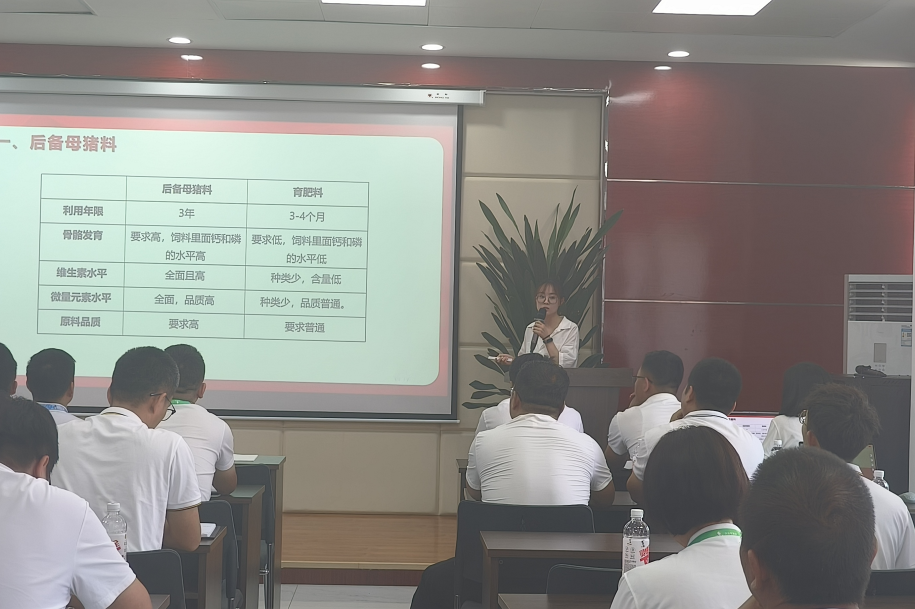 其次由反芻專家杜紅芳老師對(duì)反芻產(chǎn)品以及新增產(chǎn)品相關(guān)營(yíng)養(yǎng)指標(biāo)做了詳細(xì)的介紹,然后由技術(shù)研發(fā)部趙詩(shī)瑜老師對(duì)正能全系列豬料產(chǎn)品知識(shí)及豬場(chǎng)相關(guān)實(shí)證數(shù)據(jù)做了詳細(xì)介紹。