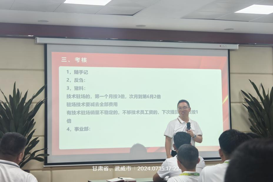 本次會(huì)議由陳雄老師主持,首先由總部高級(jí)副總裁連星老師賦能,在目前大環(huán)境下順勢(shì)而為,適應(yīng)新的變化,以客戶需求為導(dǎo)向,協(xié)助客戶降本增效,提高豬場(chǎng)生產(chǎn)成績(jī)。