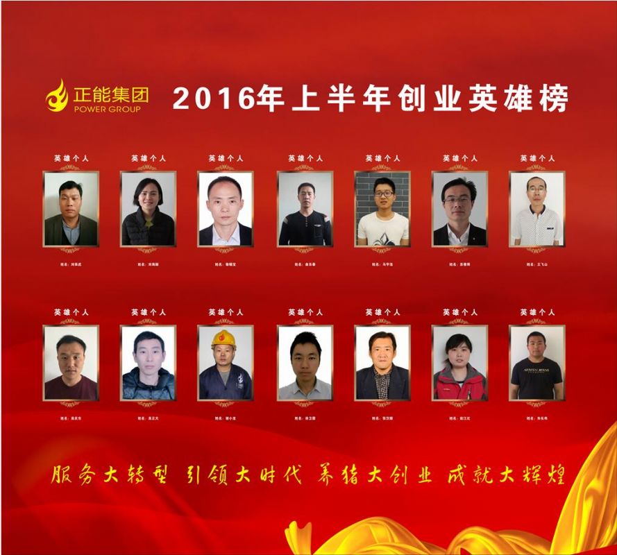 2016年7月19日晚19:00-21:00,“正能集團(tuán)股權(quán)轉(zhuǎn)讓儀式暨2016年上半年創(chuàng)業(yè)英雄頒獎(jiǎng)晚會(huì)”在西北革命圣地-銅川照金隆重舉行。今夜的照金賓館五樓會(huì)議廳華燈璀璨、高朋滿座,正能集團(tuán)總裁王義輝、集團(tuán)產(chǎn)品技術(shù)總監(jiān)連星、財(cái)務(wù)總監(jiān)朱武寧、高陵基地總經(jīng)理白萬禮、渭南、西安、咸陽、甘肅、山西、隴東等事業(yè)部、營銷公司總經(jīng)理出席晚會(huì)。正能創(chuàng)業(yè)英雄戰(zhàn)將共計(jì)100余人參加本次晚會(huì)。本次大會(huì)以“服務(wù)大轉(zhuǎn)型、引領(lǐng)大時(shí)代、養(yǎng)豬大創(chuàng)業(yè)、成就大輝煌”為主題,以開闊的視野、創(chuàng)新的形勢,引爆巨大能量場,聚英雄氣概,展團(tuán)隊(duì)風(fēng)采,亮大帥風(fēng)姿,迸發(fā)激情,總結(jié)2016上半年輝煌成就,斗志昂揚(yáng),展望2016下半年宏偉藍(lán)圖。 獎(jiǎng)項(xiàng)設(shè)置:英雄個(gè)人:100G純銀打造的正能英雄獎(jiǎng)?wù)?共22人。 英雄干部:100G純銀打造的正能英雄獎(jiǎng)?wù)?共6人。